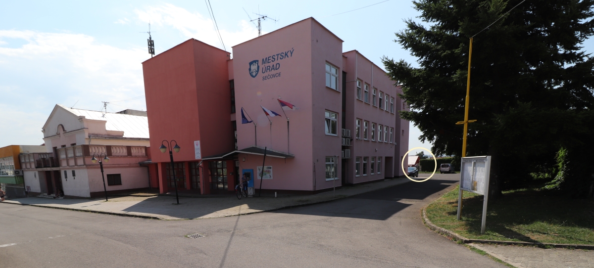 Na hlavné parkovisko a k druhému vchodu sa dostanete z Nám. sv. Cyrila a Metoda odbočením pred Mestským úradom (foto nižšie).